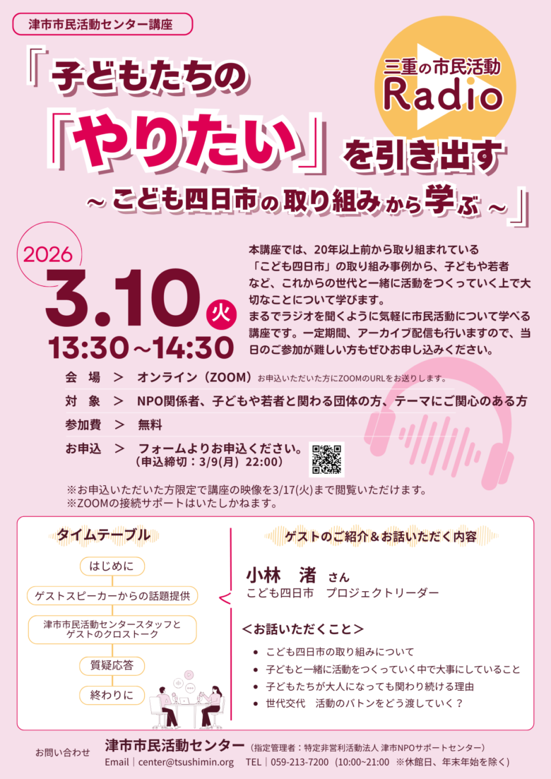 三重の市民活動Radio「子どもの「やりたい」を引き出す~こども四日市の取り組みから学ぶ~」