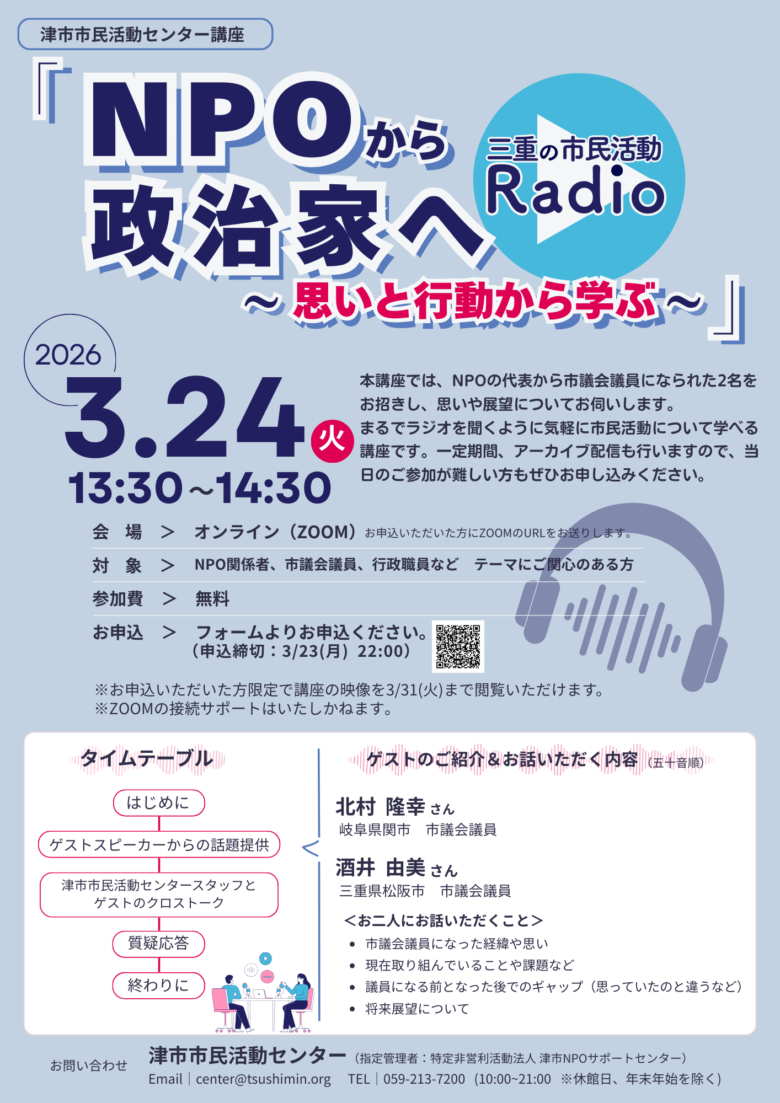 三重の市民活動Radio「NPOから政治家へ~思いと行動から学ぶ~」