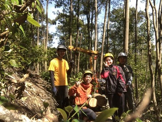 【内 容】 林業体験(伐採や間伐、運搬など)、交流会、カヌー、河原サウナ等